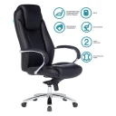 Кресло действительно поддерживает спину, на нем не устаешь сидеть часами. Оно очень устойчивое. Солидно и презентабельно выглядит. Кожзам плотный, но при этом набивка мягкая.