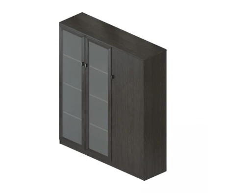 Мы приняли во внимание особенности планировки и пожелания заказчика, чтобы создать оптимальный дизайн, учитывающий наличие большого количества света в помещении. С учетом бюджета и желания заказчика использовать темную мебель, была выбрана серия мебели Sydney в цвете Вермонт/Антрацит. Она представляет собой солидные и стильные элементы, которые великолепно сочетаются с интерьером. В проект были включены различные элементы мебели, такие как стол для руководителя, опорная и подвесная тумбы, шкафы для документов, гардероб и другие функциональные компоненты серии Sydney, а так же кресла с обивкой из натуральной кожи серии Myra.