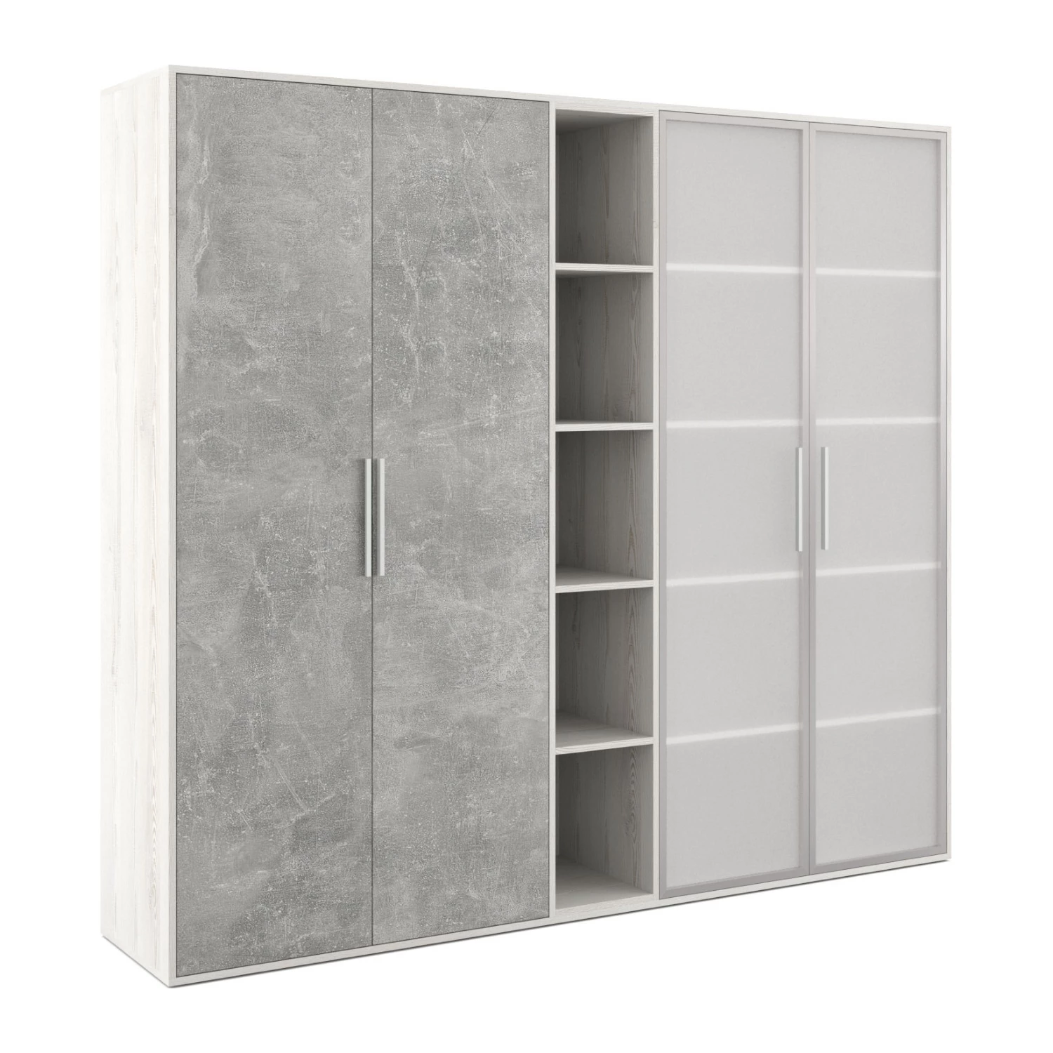 Шкаф высокий 4 створки стекло, с нишей B-tone Сосна/Бетон светлый